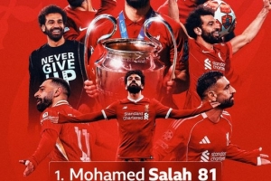 萨拉赫迎来利物浦生涯第81次欧战出场,超越卡拉格成为队史欧战出场最多球员,杰拉德以73场位居第3。