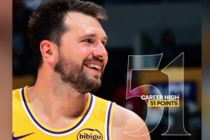 本场比赛,东契奇得到了湖人生涯新高的51分,里夫斯则突破生涯5000分里程碑。
