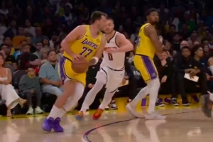GIF-东契奇迎着布劳恩干拔三分再进