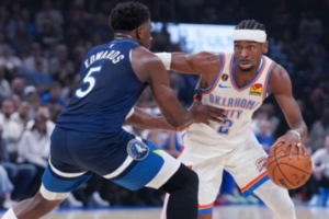 雷霆击破森林狼,亚历山大vs爱德华兹:22投20分对17投19分,俩都被防住了。