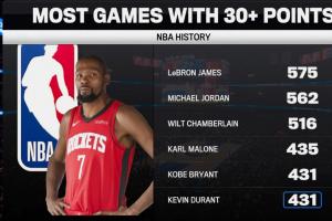 5、科比·布莱恩特&凯文·杜兰特——431场