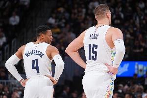 据统计,这是约基奇第二次单赛季砍下至少30次三双,为NBA历史第二位多次单赛季砍下至少30次三双的球员,比肩威少。