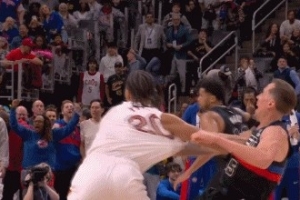 GIF-发球前泰森对邓罗进攻犯规,骑士挑战成功,进攻犯规变邓罗拉人犯规,骑士一罚一掷