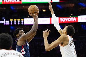 本场比赛,76人球星恩比德表现不错,进攻端杀伤力十足,打了39分钟,投篮19中8,三分球6中2,罚球19中16,空砍34分12篮板1助攻4盖帽。