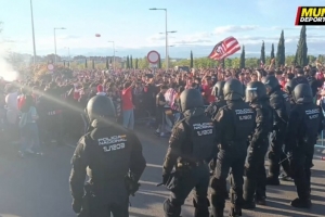 本场比赛前部分马竞球迷堵在前往球场的道路中央,警察出动介入维持秩序。
